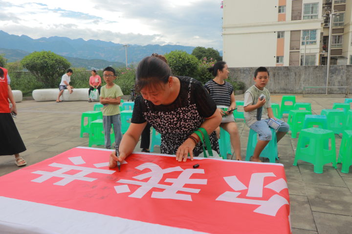 环保倡议签名活动将气氛推向高潮。在党员志愿者们的号召下,居民们纷纷在横幅上留下自己的名字,许下践行环保、共建文明奉节的庄重承诺,展现参与生态保护的决心。