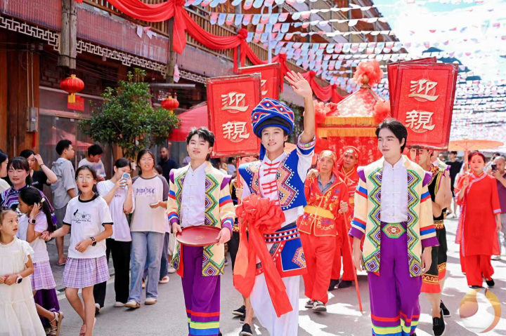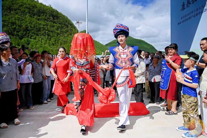 比起普通的避暑游,这场女儿会把“体验感”拉满。在“云中鹊桥·高山盟誓”婚俗传承礼上,游客能亲手参与挑盖头、对情歌等原汁原味的仪式,沉浸式触摸古朴的民族浪漫;文艺汇演环节,土家儿女用歌舞诉说家乡故事,把云雾乡的发展愿景唱进游客心里;最热闹的当属篝火舞会,当夜幕降临,熊熊火焰升起,游客与当地人手拉手跳起摆手舞,欢声笑语在山间回荡,凉意与暖意在此刻完美交融。