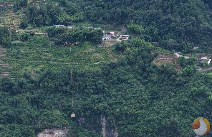 无人机空中带货。(记者 雷腾/摄)