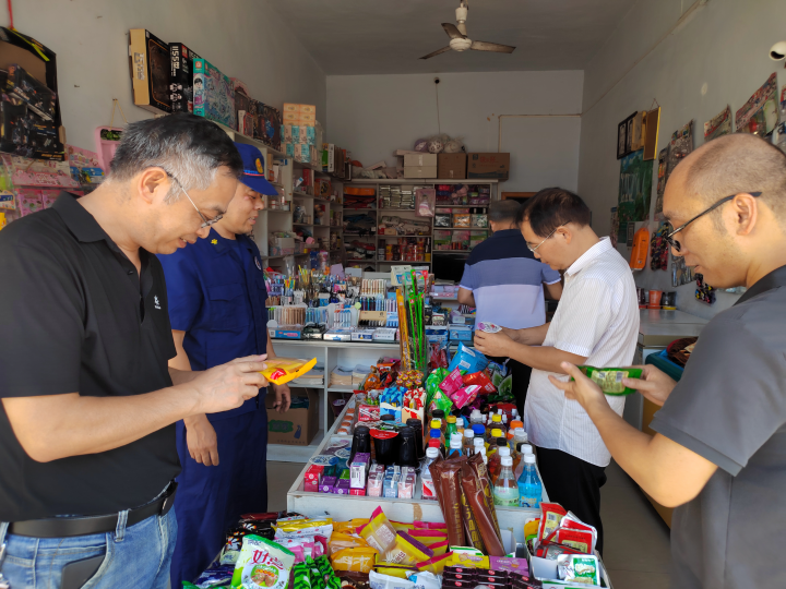 行动中,联合检查组对辖区白帝小学周边的小超市、餐饮店、文具店、文印店、小杂货店等20多家经营场所开展全覆盖检查,重点查看食品经营许可证、从业人员健康证是否齐全,是否存在销售“三无”食品、过期食品及危险玩具(如牙签弩、仿真刀具)等行为;特别检查了是否有盗版盗印教辅读物、违禁出版物、涉黄涉非文玩具在售。同步排查校园周边商铺消防设施配备、疏散通道畅通情况,现场整改灭火器过期、杂物堵塞安全出口等问题3处。