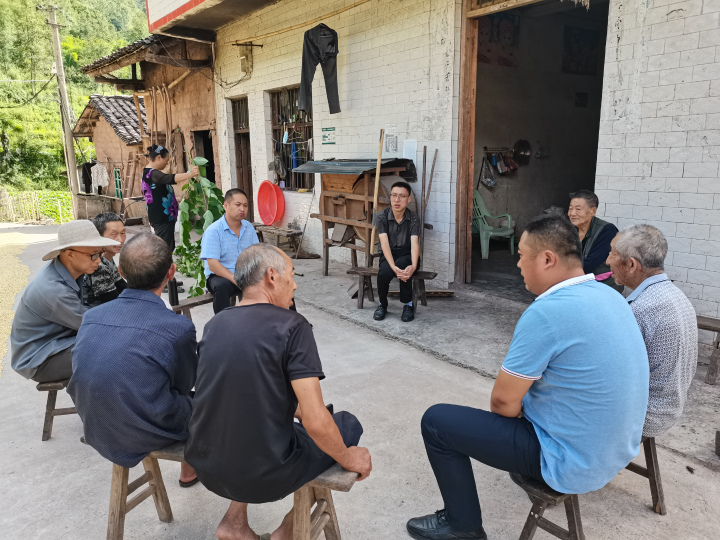 在大有村的一处院坝里,由联系村领导、驻村干部、党支部书记组成的一支志愿宣讲队通过聚焦党的声音、改革方向以及市委六届七次全会对重庆的定位和未来发展的部署,以本地方言从群众的日常生活引入,与群众们面对面交流,耐心细致地解答群众提出的疑难问题,让党的声音更加深入人心。