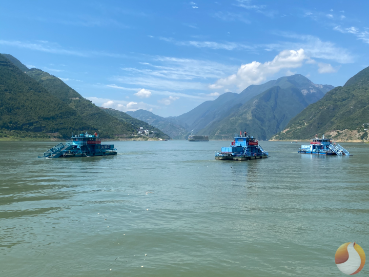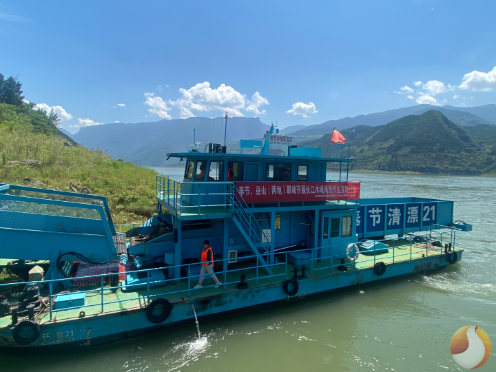 长江进入主汛期以来,秸秆、树枝等漂浮物顺江而下,致使长江重庆段下游的奉节、巫山两县漂浮物猛增。连日来,奉节长江清漂队联合巫山清漂队快速行动,开启“迅速清漂”模式,确保一江碧水向东流。