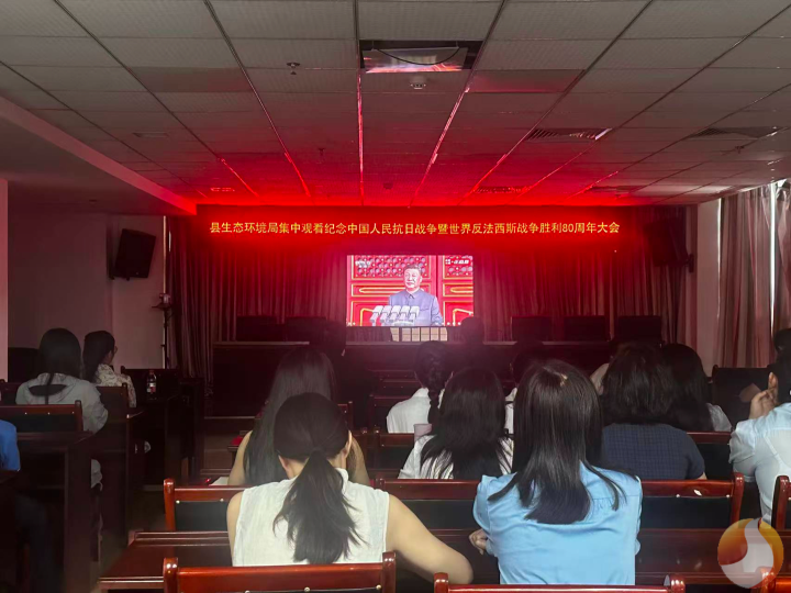 9月3日上午,纪念中国人民抗日战争暨世界反法西斯战争胜利80周年大会在北京天安门广场隆重举行。县生态环境局组织全体干部职工集中观看了大会直播,汇聚思想共识、汲取奋进力量,激发新时代生态环境保护工作的使命担当。