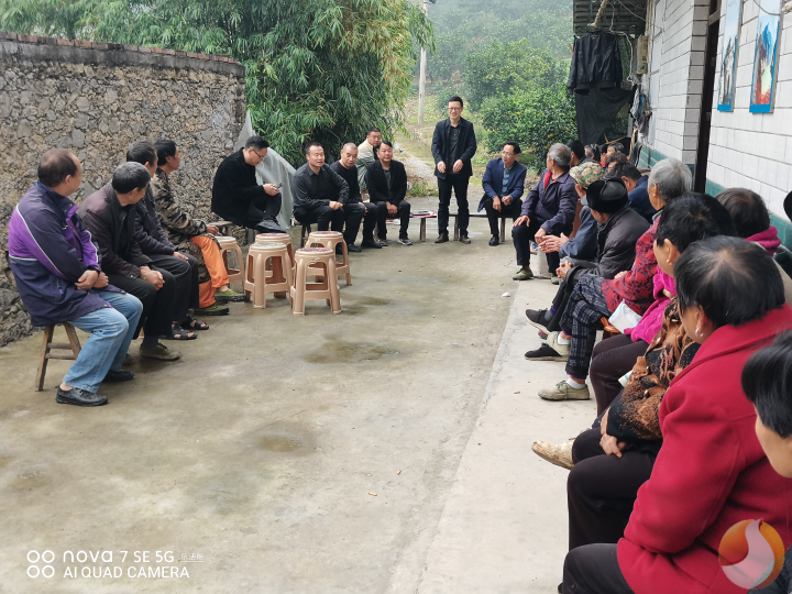 三峡村支部书记和网格长召开群众大会商议因奉建高速施工炮损的补偿问题