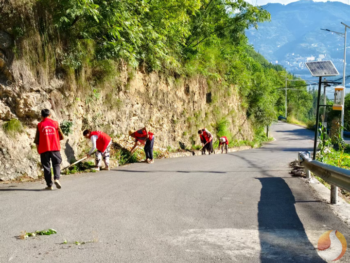 三峡村党员代表和居民清理路边杂草。(永乐镇供图)