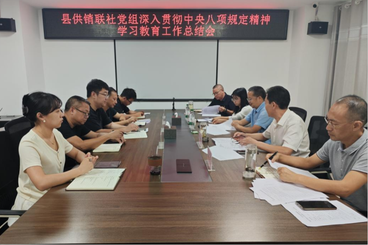 9月19日,县供销联社党组召开深入贯彻中央八项规定精神学习教育工作总结会议,传达学习习近平总书记关于深入贯彻中央八项规定精神学习教育的重要指示精神,回顾总结机关学习教育开展情况,对巩固拓展学习教育成果、推动作风建设常态化长效化进行部署。县委督导二组列席指导,全体党员干部参会。