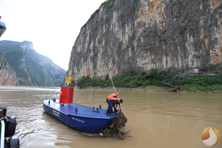 清理航标船附着垃圾。(长江万州航道处供图)