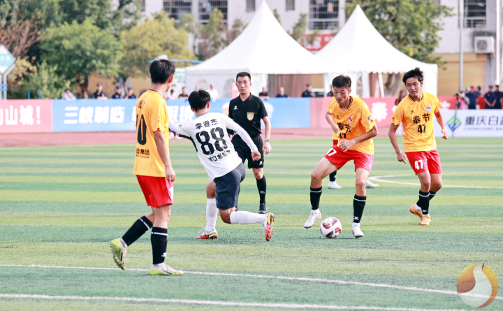 易边再战,看台上“奉节雄起”的呐喊声此起彼伏。第61分钟,奉节诗橙队获得前场任意球,47号宁治炜主罚将球传入禁区,27号李涛高高跃起头球破门,1:1扳平比分。第67分钟,奉节诗橙队再次利用中场任意球机会,宁治炜长传找到李涛,后者头球攻门被对方门将扑出,17号球员张恒源机敏补射得手,2:1反超。补时阶段,李涛长途奔袭抽射再下一城,完成梅开二度,将比分锁定为3:1。