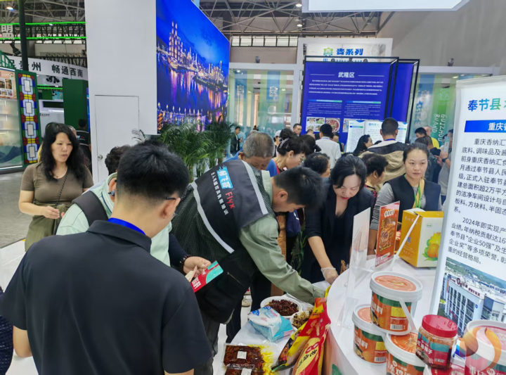 展台前人流如织、洽谈火热。奉节脐橙及周边产品、辣子鸡、火锅底料、调味品等特色农副产品备受青睐,采购商咨询、品鉴、洽谈络绎不绝。夔门公司凭借奉节脐橙的优良品质签下多笔意向订单;奉节辣子鸡等深加工食品以独特风味吸引客商驻足;香纳汇火锅底料则通过现场品鉴,达成多项产销合作。
