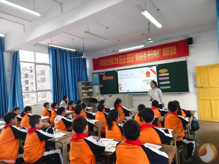 本次活动以“语润白帝,研行共进”为主题,通过示范课展示、专题研讨、经验交流等形式,为农村学校带去先进教学理念和方法。在课堂展示环节,四位骨干教师分别执教语文、数学、道德与法治、音乐四个学科。廖晓庆老师通过史料分析和情景对话,引导学生深入理解课文内涵;杨骏老师运用实物测量和生活类比,让抽象的数学概念变得直观易懂;成小敏老师通过案例分析和应急演练,强化学生安全意识;何庆老师则在传统音乐教学中融入文化解读,提升学生审美素养。
