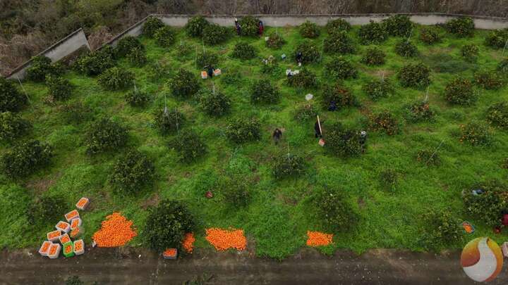 春日暖阳下,奉节县康乐镇河水村的脐橙园里,金黄的果实挂满枝头,果农们正抢抓晴好天气,加紧采摘、装箱、搬运,田间地头处处呈现繁忙景象。