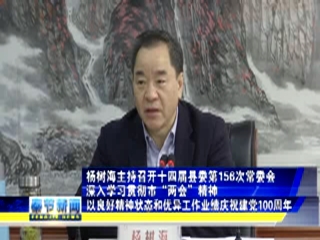 杨树海主持召开十四届县委第156次常委会 深入学习贯彻市“两会”精神 以良好精神状态和优异工作业绩庆祝建党100周年