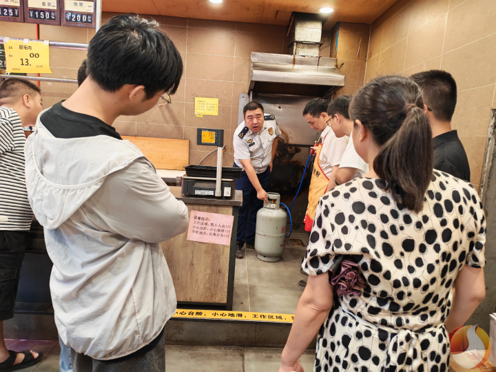 在实操教学阶段,讲师团成员带领网格员深入居民小区、商超、宾馆等重点场所开展现场教学。在朝阳社区老旧居民楼内,讲师团成员现场演示室内消火栓水压测试等检查要点及使用方法;在金东超市,对电器线路敷设、消防安全标识安装、假冒伪劣灭火器识别等知识进行详细讲解;针对宾馆客房的疏散指示标识设置、应急照明维护等细节进行手把手教学。参训网格员通过“看、听、问、练”四位一体学习模式,切实提升了隐患排查的精准度和应急处置的实操能力。